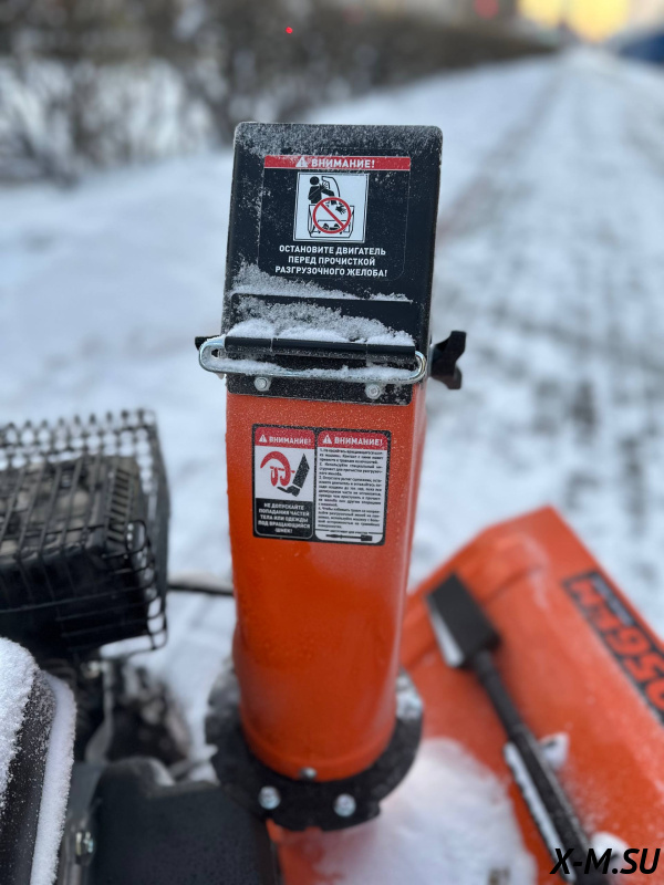 Максимальная дальность выброса снега до 12 метров.