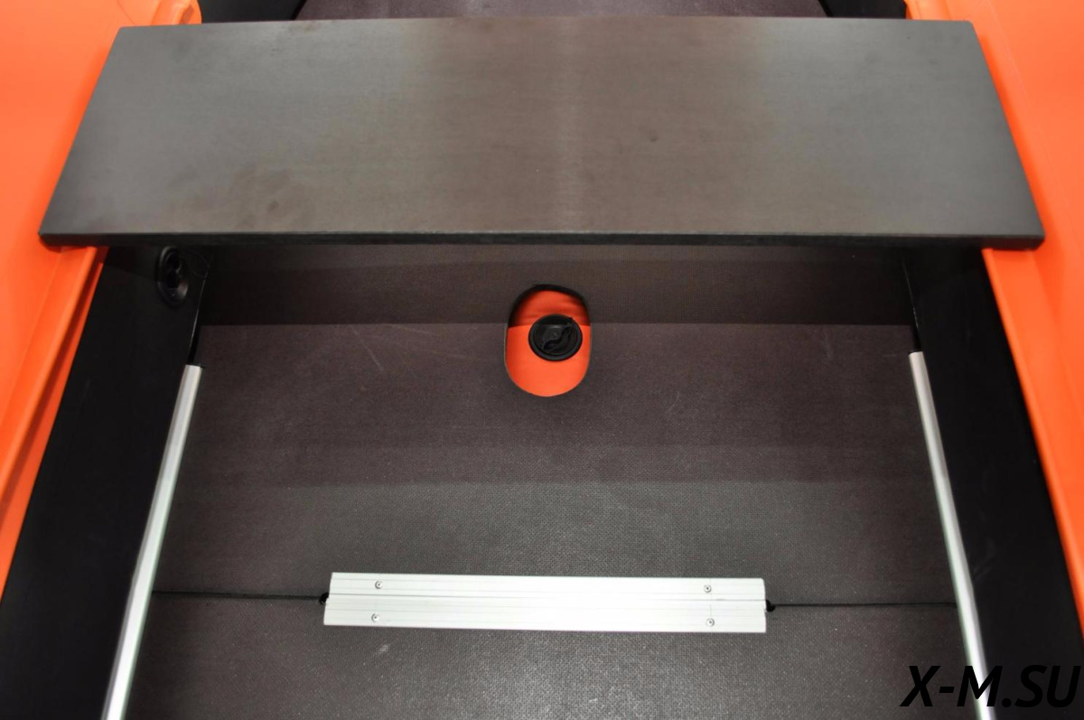 Еще одна особенность модели - жесткий настил-книжка из фанеры. Им легко пользоваться, нужно просто расстелить на днище, а после плавания - свернуть. Теплый деревянный пол обеспечит комфорт босым ногам летом, и послужит теплоизолирующей прослойкой в прохладную погоду. Кроме того, настил делает корпус жестче. На такой палубе можно стоять и перемещаться. Можно использовать лодку и для рыбалки. В ней будет комфортно рыбачить в заброс двум рыбакам, в просторном кокпите шириной 117 см и длиной 277 см найдется место для снастей и богатого улова. Мотор позволит уплыть к самым потаенным местам с хорошим клевом.